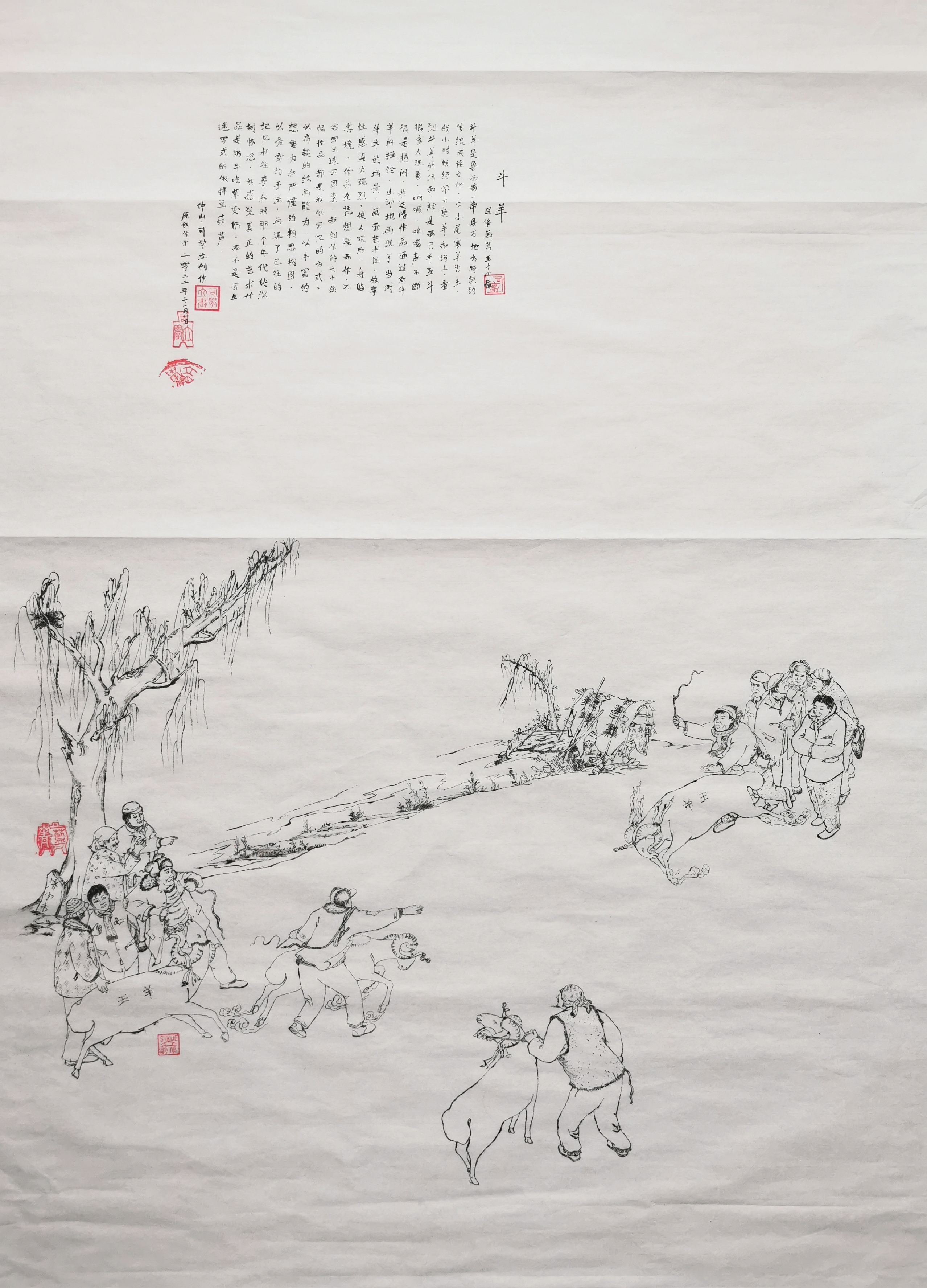 民俗画《斗羊》
